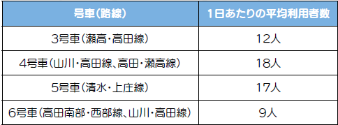3~6号車は限られた地域内を循環するため、国道を運行する1~2号車と比べて利用者数が少ない状況です。