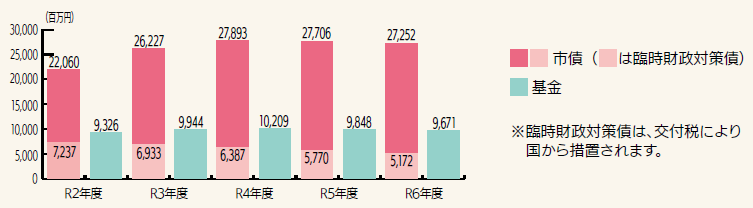 将来支払わなければならない負債などが市の財政規模に対してどのくらいの割合かを示した指標です。