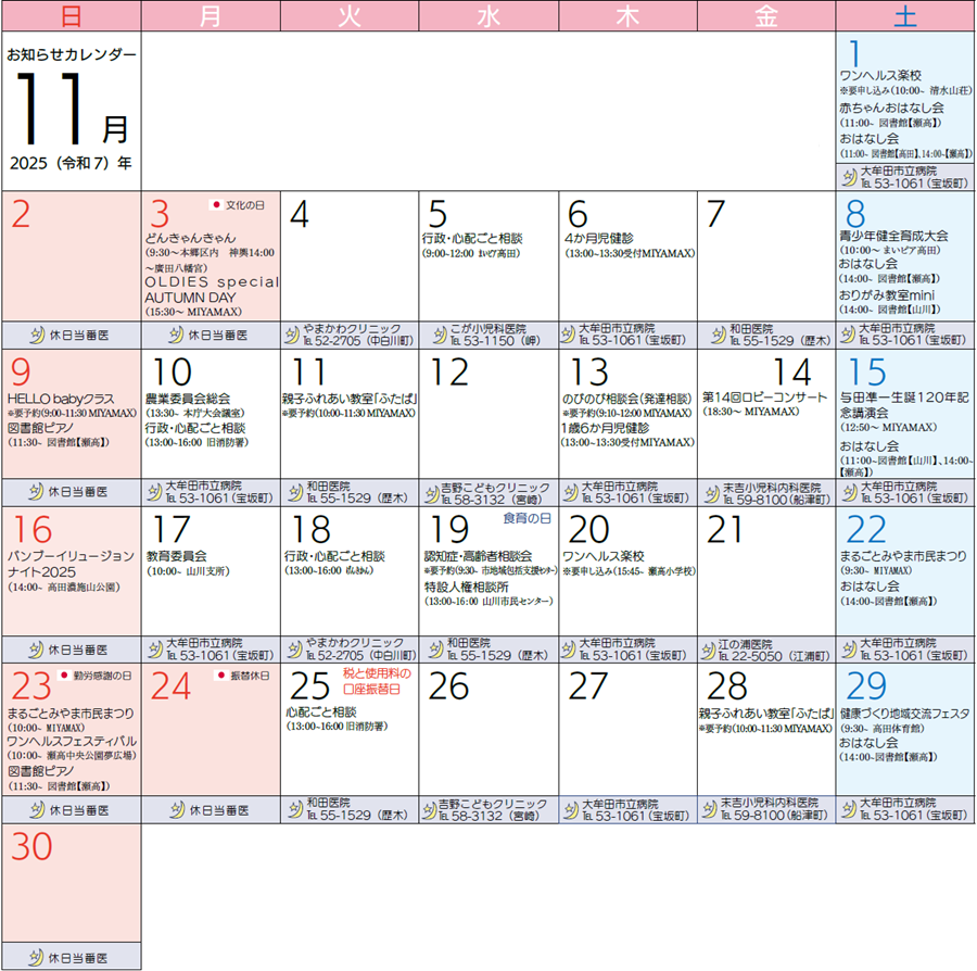 ■11月の休日当番医は本紙14ページに掲載しています。