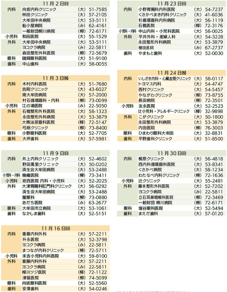 ★当番医は変更・追加される場合があるため、必ず当日の新聞などで確認ください。問い合わせは各医療機関へお願いします。