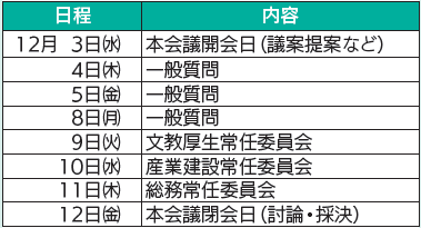 令和7年定例第4回市議会は、次のとおり開催する予定です。会議は9時30分から開始します。