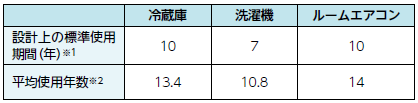 統計では、冷蔵庫・洗濯機・ルームエアコンの平均使用年数は、標準使用期間を3年から4年超えて使用しているとされています。