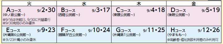 各コースの詳細、最新の運行情報はホームページをご確認ください