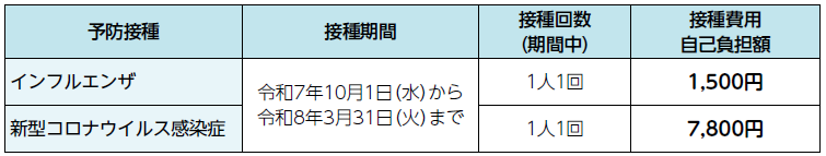 ※対象者以外の人は、任意接種となります。任意接種の場合、予防接種費用は各医療機関が設定する金額です。
