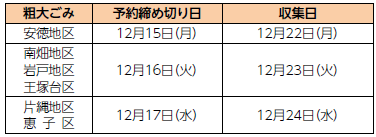 年末は、特に粗大ごみの収集予約が大変込み合いますので、できる限り早めに予約をお願いします。