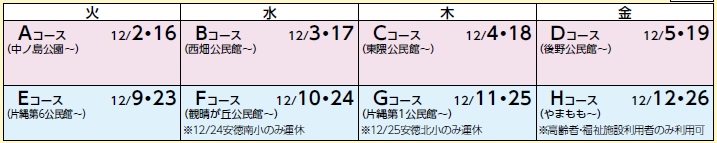 各コースの詳細、最新の運行情報はホームページをご確認ください
