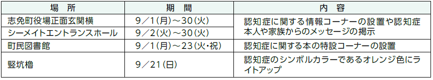 9月の「世界アルツハイマー月間」と21日の「世界アルツハイマーデー」にあわせ、志免町でも認知症に関する正しい理解を広げるための取り組みを行っています。