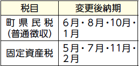 全国標準税務システムの導入により、令和8年度から町県民税(普通徴収)と固定資産税の納期が10期から標準仕様による4期へ変更となります。
