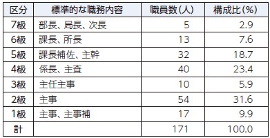 (注)給与条例に基づく給料表の級区分ごとの職員数です。再任用職員(常勤)を含みます。