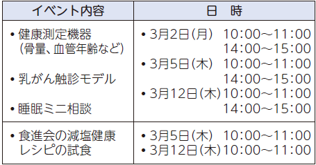 ※3月2日(月)~3月13日(金)は、女性の健康に関するパネル展示やパンフレットを配布しています。