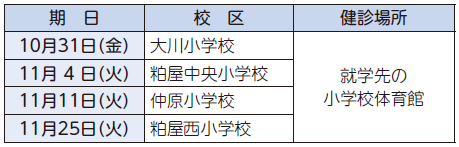 詳細は、健診の1か月前に保護者宛てにお送りする案内通知をご覧ください。