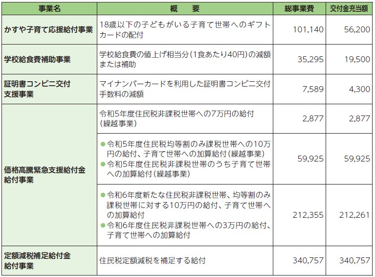 ※交付された地方創生臨時交付金の金額と、各事業の交付金充当額の合計との差は、令和5年度実施事業に対して追加交付されたことによるものです。