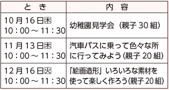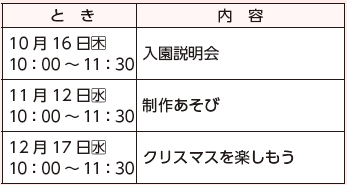 日程は天候などで変更になる場合があります。申し込みや問い合わせは、直接、園へお願いします。