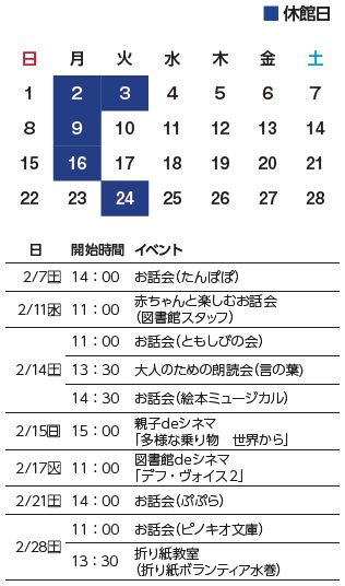 ■2月の図書館カレンダー