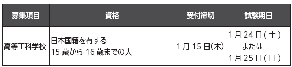 入所選考(筆記および面接):1月14日(水) 9時開始