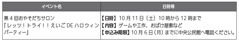 ■10月イベントのお知らせ