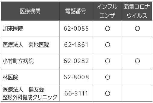 予防接種は、直方鞍手地区や飯塚地区をはじめとする福岡県の指定医療機関で受けられます。小竹町内の医療機関は下記のとおりです。希望する医療機関に直接予約してください。