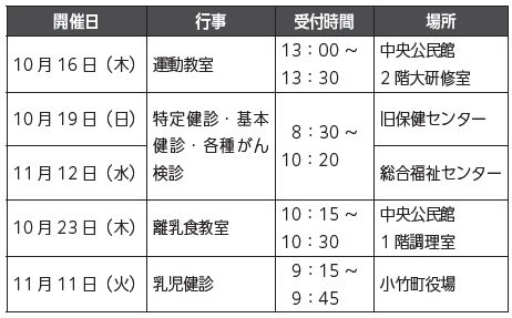 内容によっては、事前に予約が必要なものや対象者が限られる場合があります。詳しくは、健康こども課健康対策係までお問い合わせください。