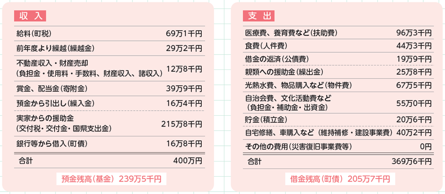 「町の一般会計決算を年収400万円の世帯にたとえると・・・」