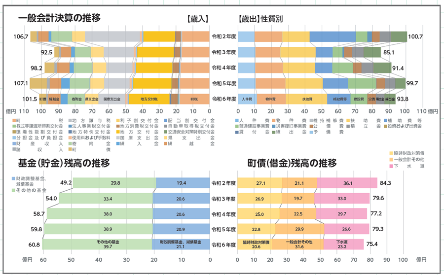 ・町債…建物の建設など大きな事業を行うために町が借入れるお金
