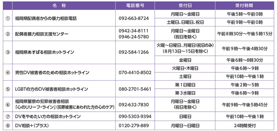 暴力を受けた場合、暴力を受けた人を守る法律や制度があり、法律に基づいた支援が受けられます。1人で悩まず、すぐに相談窓口に連絡しましょう。相談は無料で、秘密は厳守します。