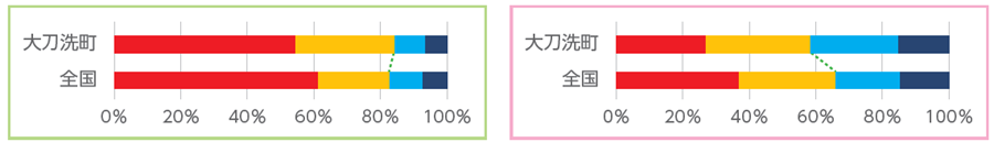 いずれの項目でも、肯定的回答率が全国比と同等であり、おおむね高い。