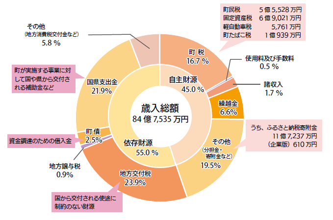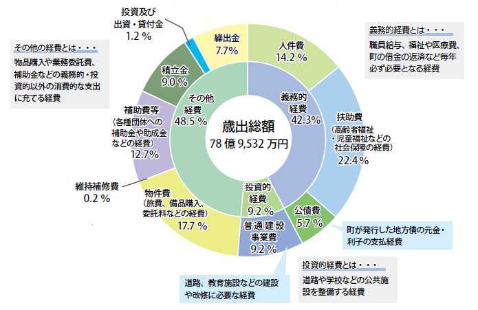 令和6年度の一般会計決算は、歳入歳出ともに増加。歳出増加の主な要因は、木佐木小体育館改修工事、消防団格納庫新築工事などの施設整備費やふるさと納税基金積立金の増加です。歳入は、地方交付税の増額やふるさと納税寄附金の増加が主な要因です。