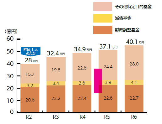 令和6年度末の基金残高は54億7906万円で、前年比7・6%の増加。地方交付税の追加交付による増額や、ふるさと納税寄附金の伸びなどにより、近年の基金残高は増加傾向にあります。