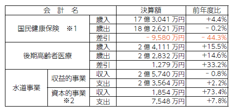 ※1 国民健康保険特別会計の歳入不足額は、翌年度予算からの繰り上げ充用で赤字補填をしています。