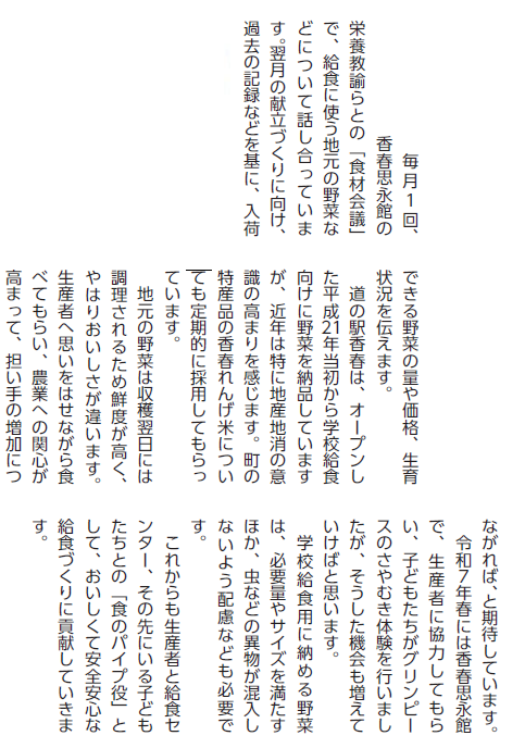 香春思永館栄養教諭 古澤栞(ふるさわしおり)さん