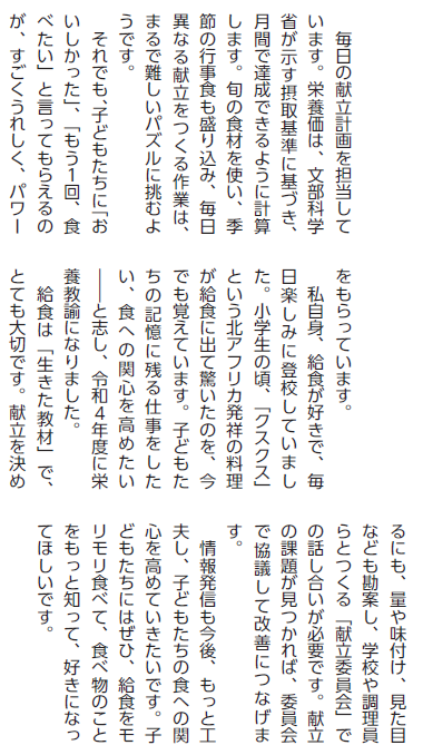 子どもたちの記憶に残る仕事 食への関心を高めて