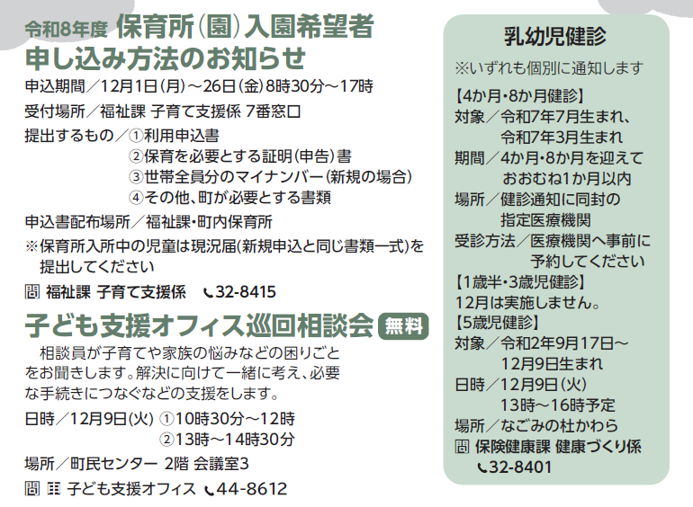 子育て 子育て 7/21 前の記事 次の記事 発行日 : 2025年11月07日 自治体名 : 福岡県香春町 広報紙名 : 広報かわら 令和7年11月号 Tweet シェアする 子育て支援センターからのお知らせ 知ることから始めよう。