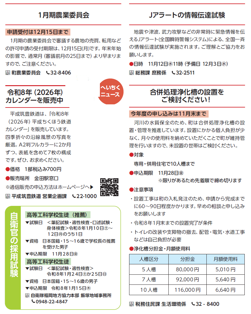 くらし 香春町のお役立ち情報 かわらばん【お知らせ】 12/21 前の記事 次の記事 発行日 : 2025年11月07日 自治体名 : 福岡県香春町 広報紙名 : 広報かわら 令和7年11月号 Tweet シェアする カワラ新聞(2) 香春町のお役立ち情報 かわらばん【募集】