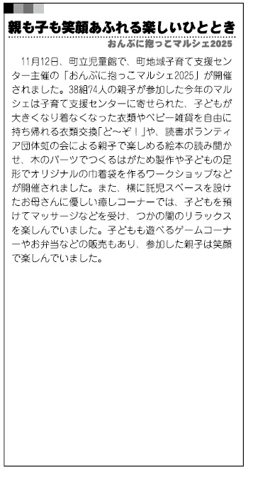 子育て まちのホットNews 13/32 前の記事 次の記事 発行日 : 2025年12月03日 自治体名 : 福岡県添田町 広報紙名 : 広報そえだ 令和7年12月号 Tweet シェアする 歴まちコラム ~歴史と文化のふる里探訪~ 地域子育て支援センター 12月の予定