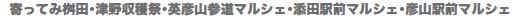 実りの秋を迎え、町内各地で収穫祭やマルシェが開かれました。11月2日にBRT豊前桝田駅前で開かれた「寄ってみ桝田」では、豚汁のふるまいやピザづくり・柚こしょうづくり体験などが行われました。山口市から紅葉狩りの途中で立ち寄った古川さんは「柚こしょうを作るのも、作りたてを食べるのも初めてです」と親子で仲良く、辛みを調整しながら作っていました。3日は津野収穫祭が旧津野小学校で6年ぶりに開催されました。朝採れの野菜や手作りの雑貨などが10台以上の軽トラック荷台に並べられた軽トラ市やおでん、豚汁などの販売もあり、10時の開始前に多くの人が訪れ、午前中には新鮮野菜などが売り切れていました。8日は英彦山の神宮参道沿いでヤマメの塩焼きなどの販売が、9日はJR添田駅前で弁当や雑貨の販売が、16日はBRT彦山駅前でぜんざいの振る舞いや地元産のお米の販売などのマルシェが開かれ、多くの人でにぎわいました。