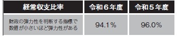 財政の弾力性を判断する経常収支比率は、94.1%となり、前年度に比べ1.9ポイント減少しています。