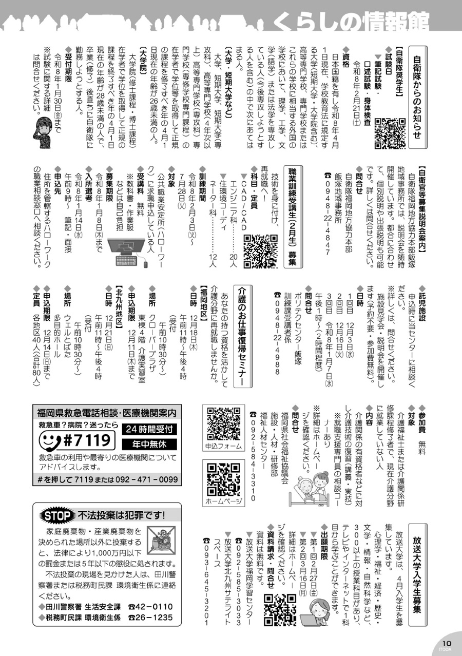 しごと 広報いとだ 令和7年12月号 P.10 9/23 前の記事 次の記事 発行日 : 2025年12月01日 自治体名 : 福岡県糸田町 広報紙名 : 広報いとだ 令和7年12月号 Tweet シェアする 広報いとだ 令和7年12月号 P.9 広報いとだ 令和7年12月号 P.11