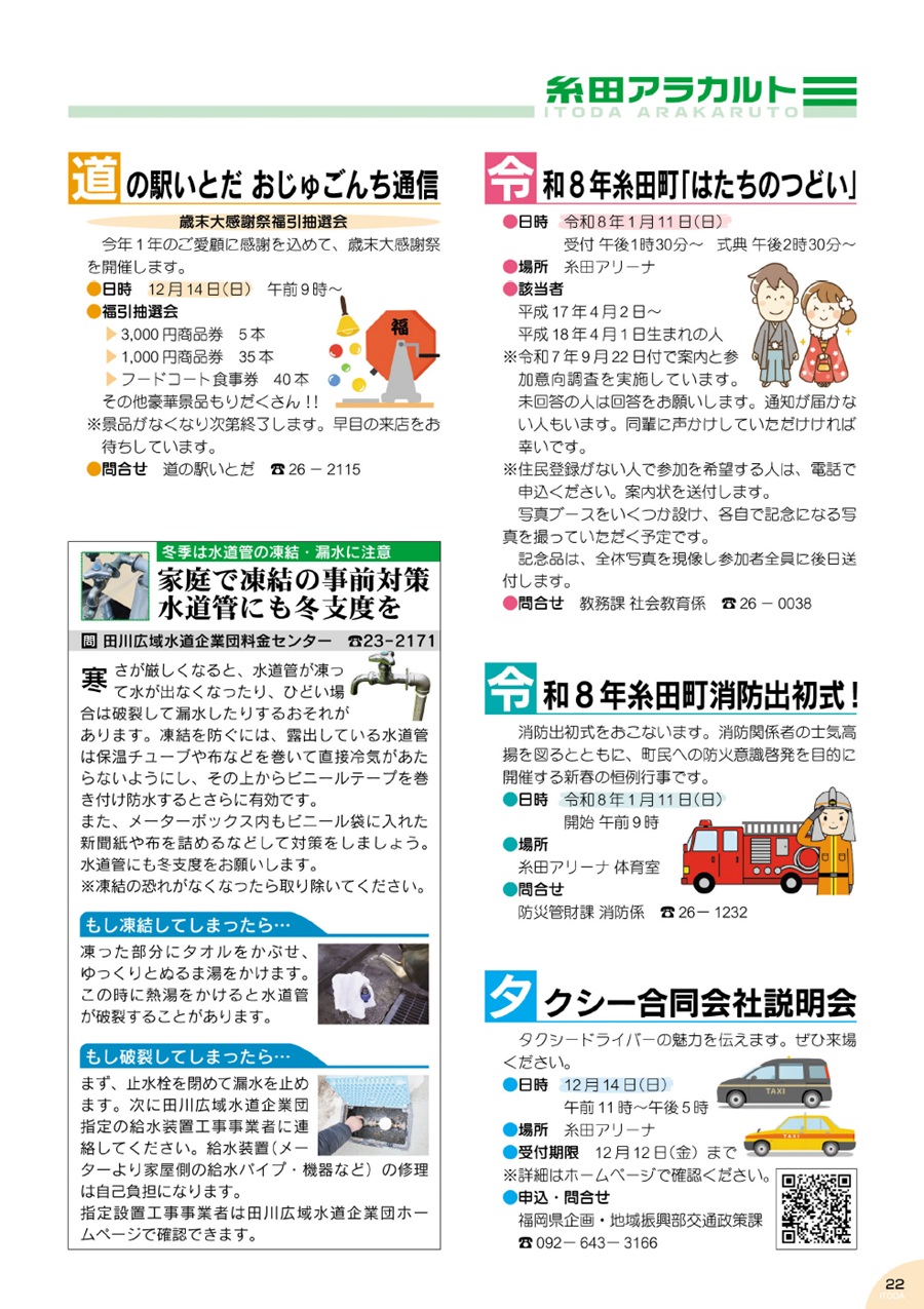 くらし 広報いとだ 令和7年12月号 P.22 21/23 前の記事 次の記事 発行日 : 2025年12月01日 自治体名 : 福岡県糸田町 広報紙名 : 広報いとだ 令和7年12月号 Tweet シェアする 広報いとだ 令和7年12月号 P.21 広報いとだ 令和7年12月号 P.23
