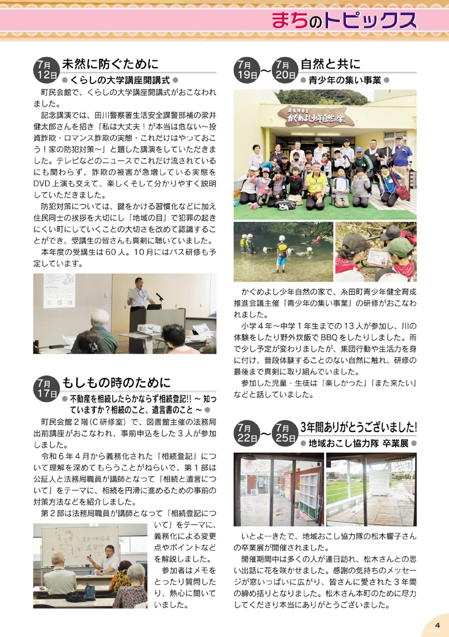 くらし 広報いとだ 令和7年9月号 P.4 3/20 前の記事 次の記事 発行日 : 2025年09月01日 自治体名 : 福岡県糸田町 広報紙名 : 広報いとだ 令和7年9月号 Tweet シェアする 広報いとだ 令和7年9月号 P.2-P.3 広報いとだ 令和7年9月号 P.5