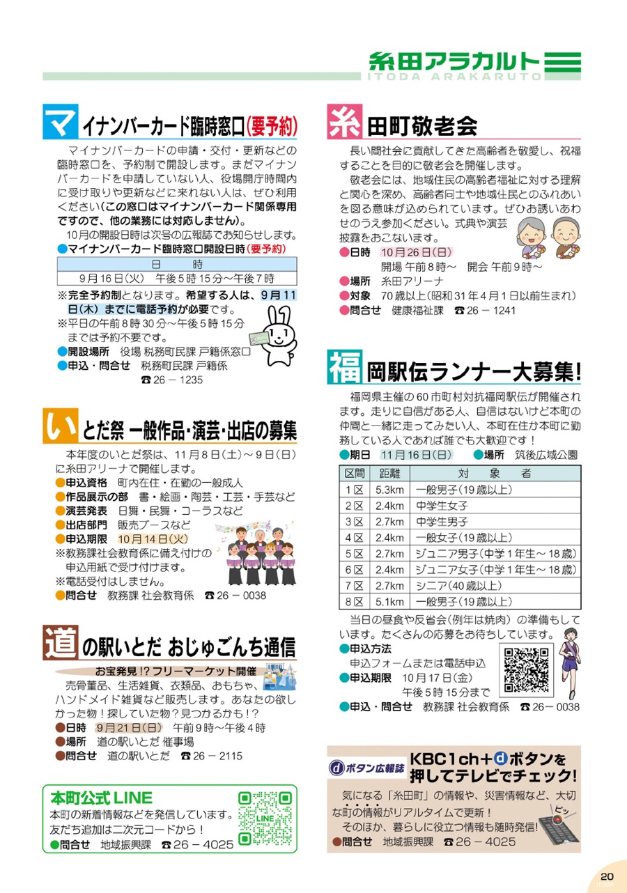 くらし 広報いとだ 令和7年9月号 P.20 18/20 前の記事 次の記事 発行日 : 2025年09月01日 自治体名 : 福岡県糸田町 広報紙名 : 広報いとだ 令和7年9月号 Tweet シェアする 広報いとだ 令和7年9月号 P.19 広報いとだ 令和7年9月号 P.21