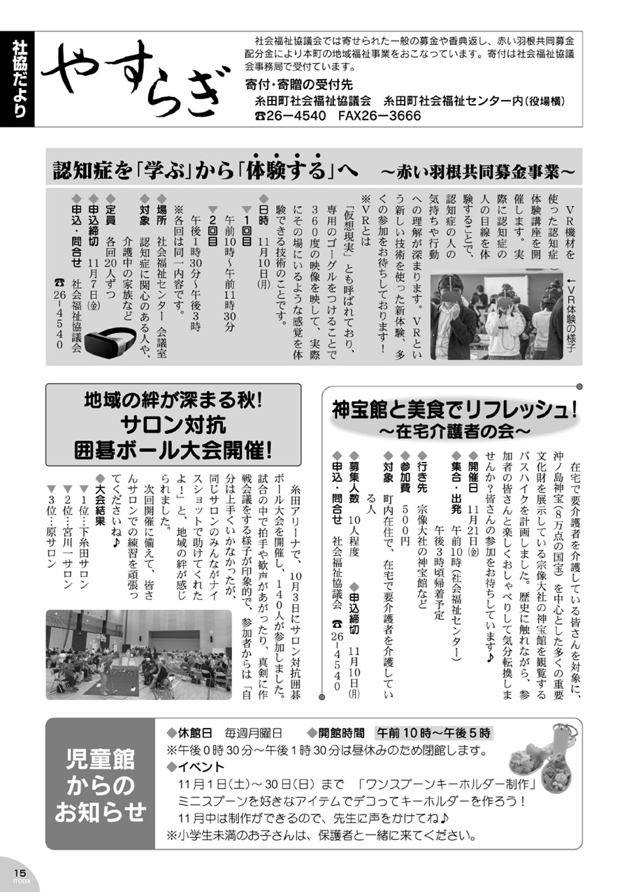 くらし 広報いとだ 令和7年11月号 P.15 15/22 前の記事 次の記事 発行日 : 2025年11月01日 自治体名 : 福岡県糸田町 広報紙名 : 広報いとだ 令和7年11月号 Tweet シェアする 広報いとだ 令和7年11月号 P.14 広報いとだ 令和7年11月号 P.16