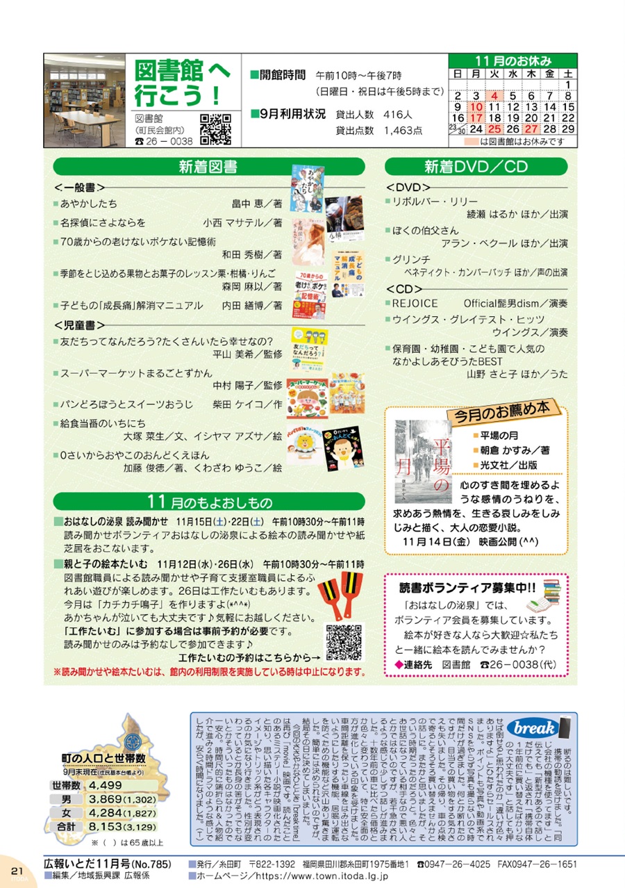 くらし 広報いとだ 令和7年11月号 P.21 21/22 前の記事 次の記事 発行日 : 2025年11月01日 自治体名 : 福岡県糸田町 広報紙名 : 広報いとだ 令和7年11月号 Tweet シェアする 広報いとだ 令和7年11月号 P.20 広報いとだ 令和7年11月号 P.22