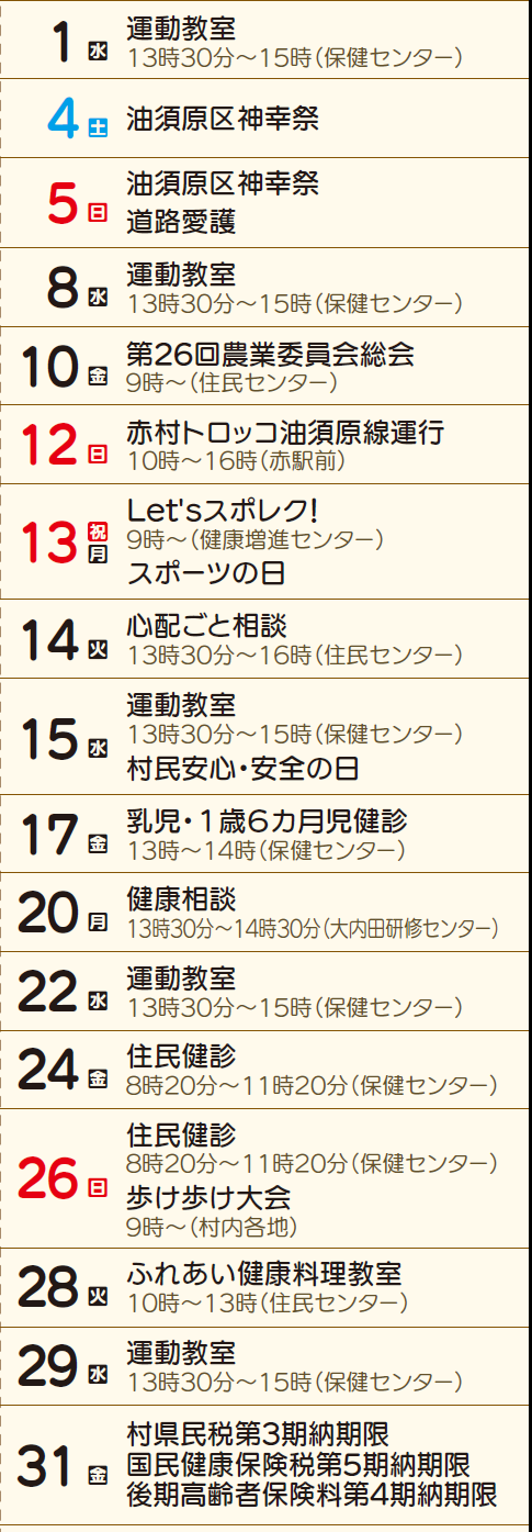 くらし 行事予定 10月 October 23/25 前の記事 次の記事 発行日 : 2025年10月01日 自治体名 : 福岡県赤村 広報紙名 : 広報あか 2025年10月号 VOL.834 Tweet シェアする 笑顔 募集中 編集後記