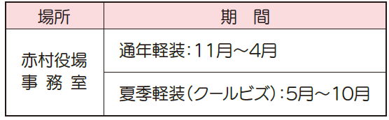 役場では5月~10月を夏季軽装(クールビズ)期間としています。政府において全国一律の実施期間の設定が廃止されたことや、福岡県の取り組みを踏まえ、一層の省エネ・地球温暖化対策の推進、および職務能率向上のため、役場職員は下記のとおり「通年軽装」とさせていただきます。皆様のご理解をお願い致します。
