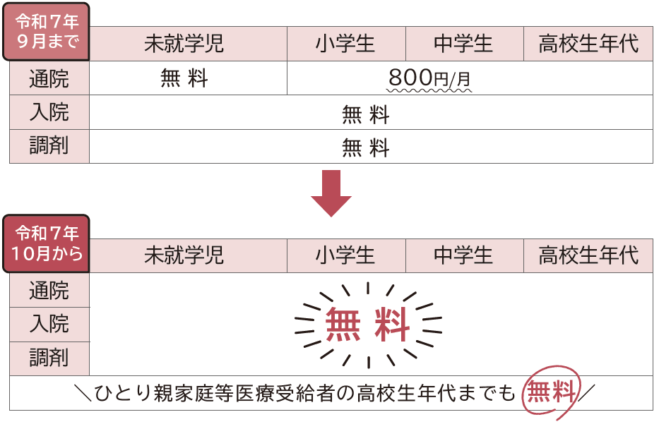 ※入院時の食事代や保険適用外の診療は助成の対象外です。