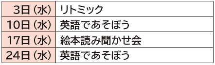 専門の講師をお招きしての「リトミック」「絵本読み聞かせ」「英語であそぼう」や季節感のある様々なイベントを開催しています。