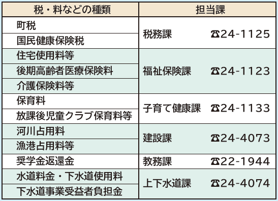 納付が難しい場合は、必ず担当課に相談してください。電話でも窓口でも大丈夫です。