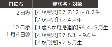 ■12月の乳幼児健診 予定表(12/1-R8.1/10)