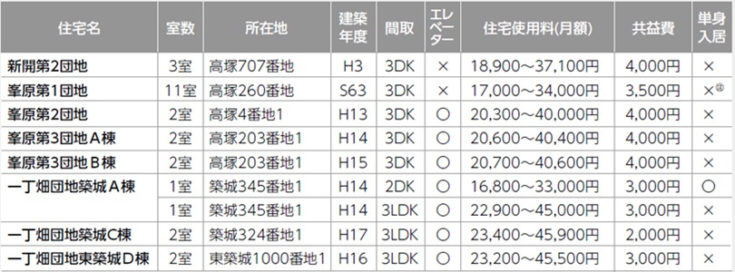 (注)2人以上の世帯入居を優先し、応募がない場合は単身入居も可