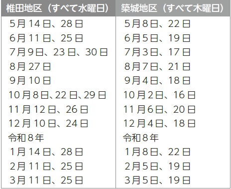 ※すべて木曜日